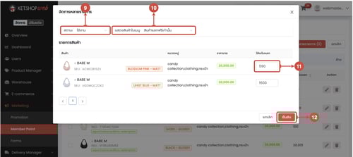 (ตำแหน่งที่ 9) ปรับสถานะรายการสินค้าแลกฟรีแก้ไขจำนวนแต้มที่ต้องใช้แลกสินค้า