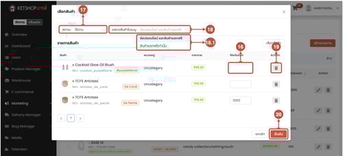 (ตำแหน่งที่ 19) คลิกไอคอนถังขยะ เพื่อลบสินค้าที่ไม่ต้องการออก