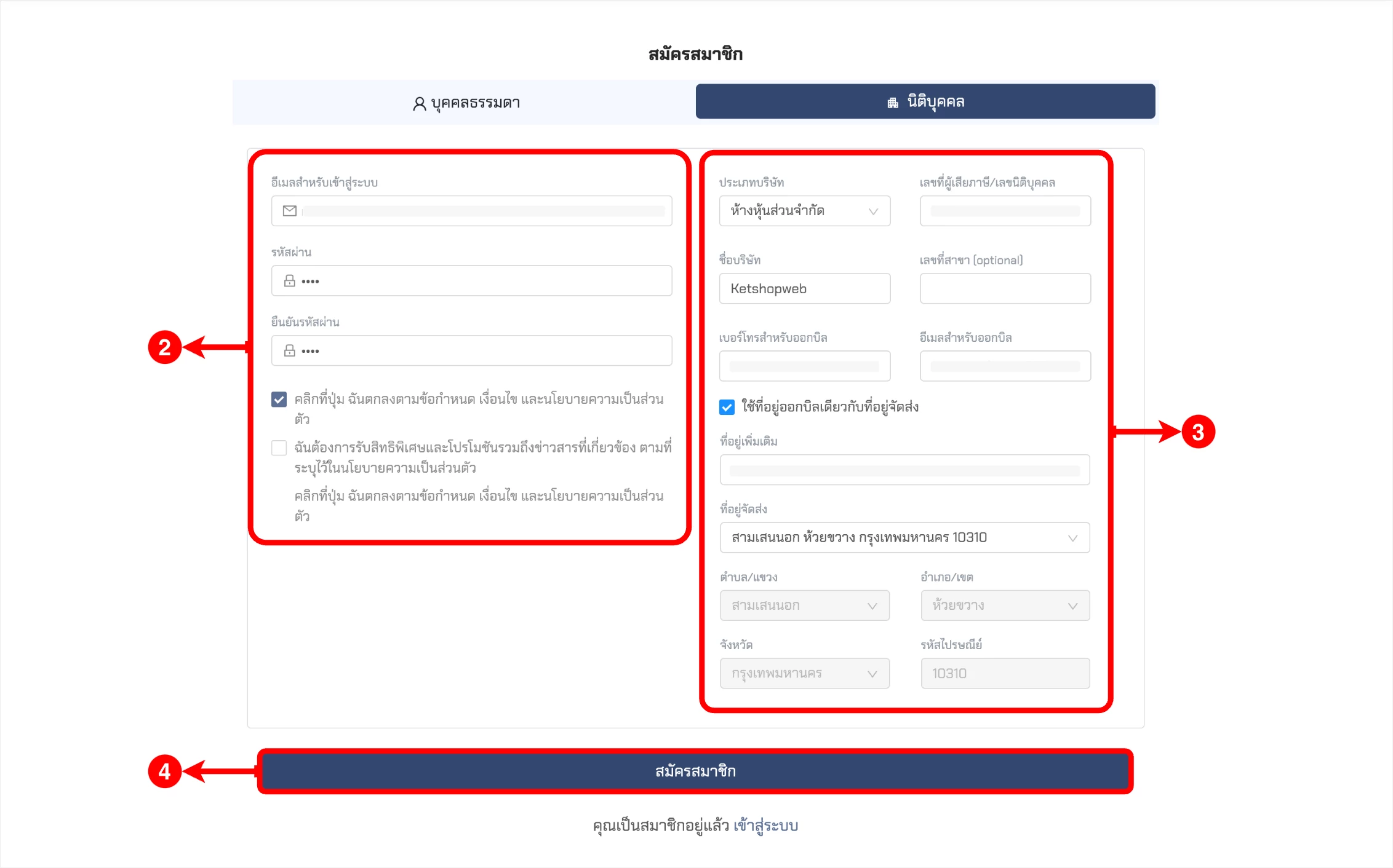 (ตำแหน่งที่ 4) คลิกปุ่ม 'สมัครสมาชิก'