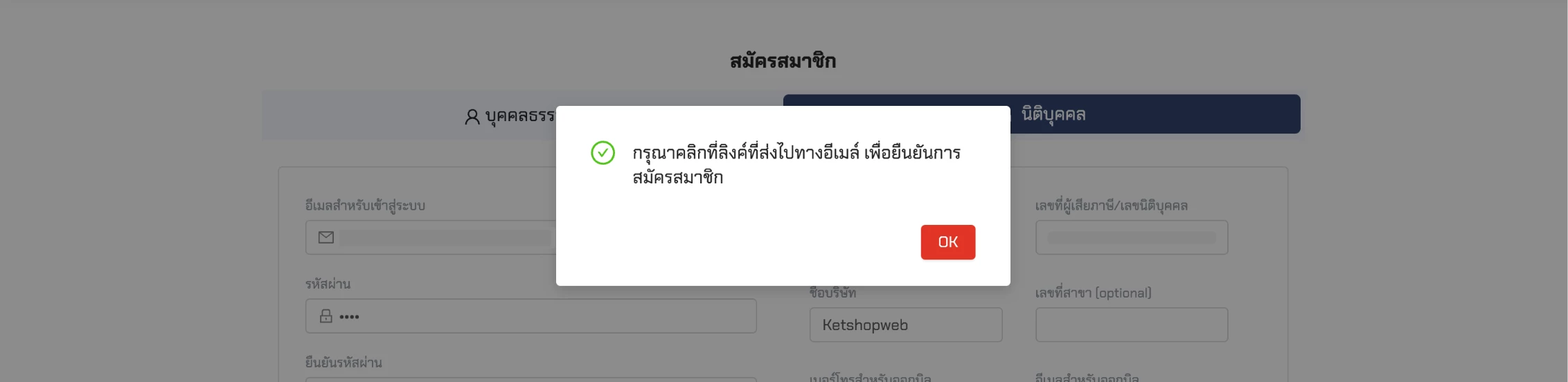 ทำการยืนยันการสมัครสมาชิกที่อีเมลสำหรับเข้าสู่ระบบ