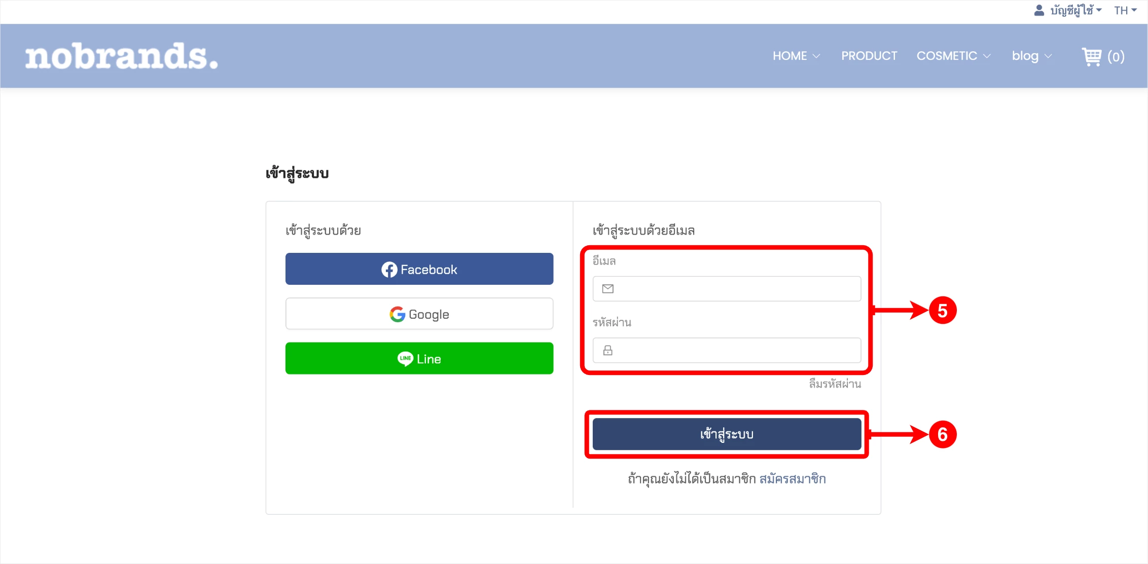 (ตำแหน่งที่ 5) กรอกอีเมล และรหัสผ่านสำหรับเข้าสู่ระบบ