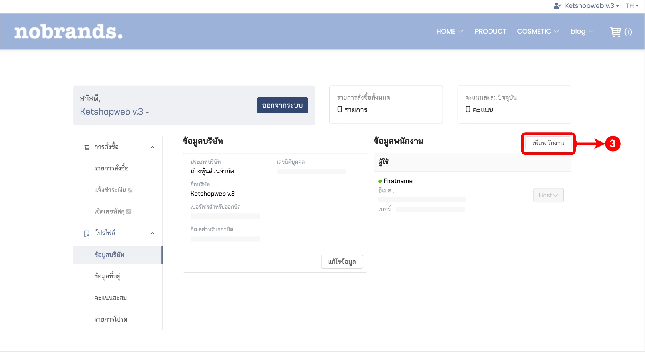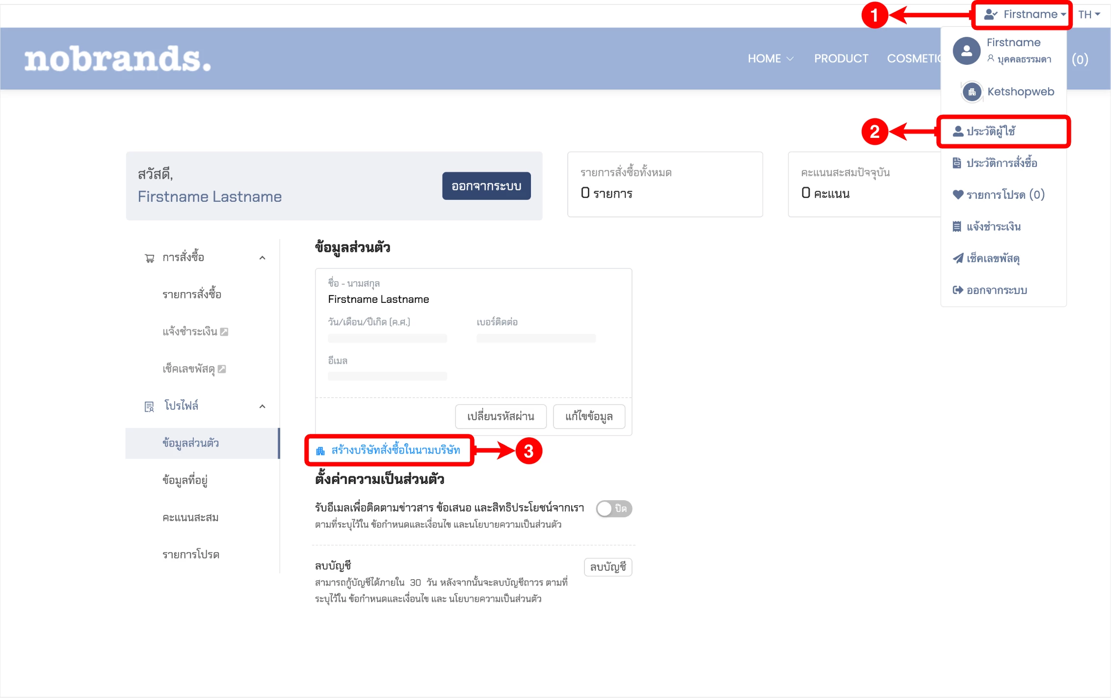 (ตำแหน่งที่ 3) คลิก 'สร้างบริษัทสั่งซื้อในนามบริษัท'