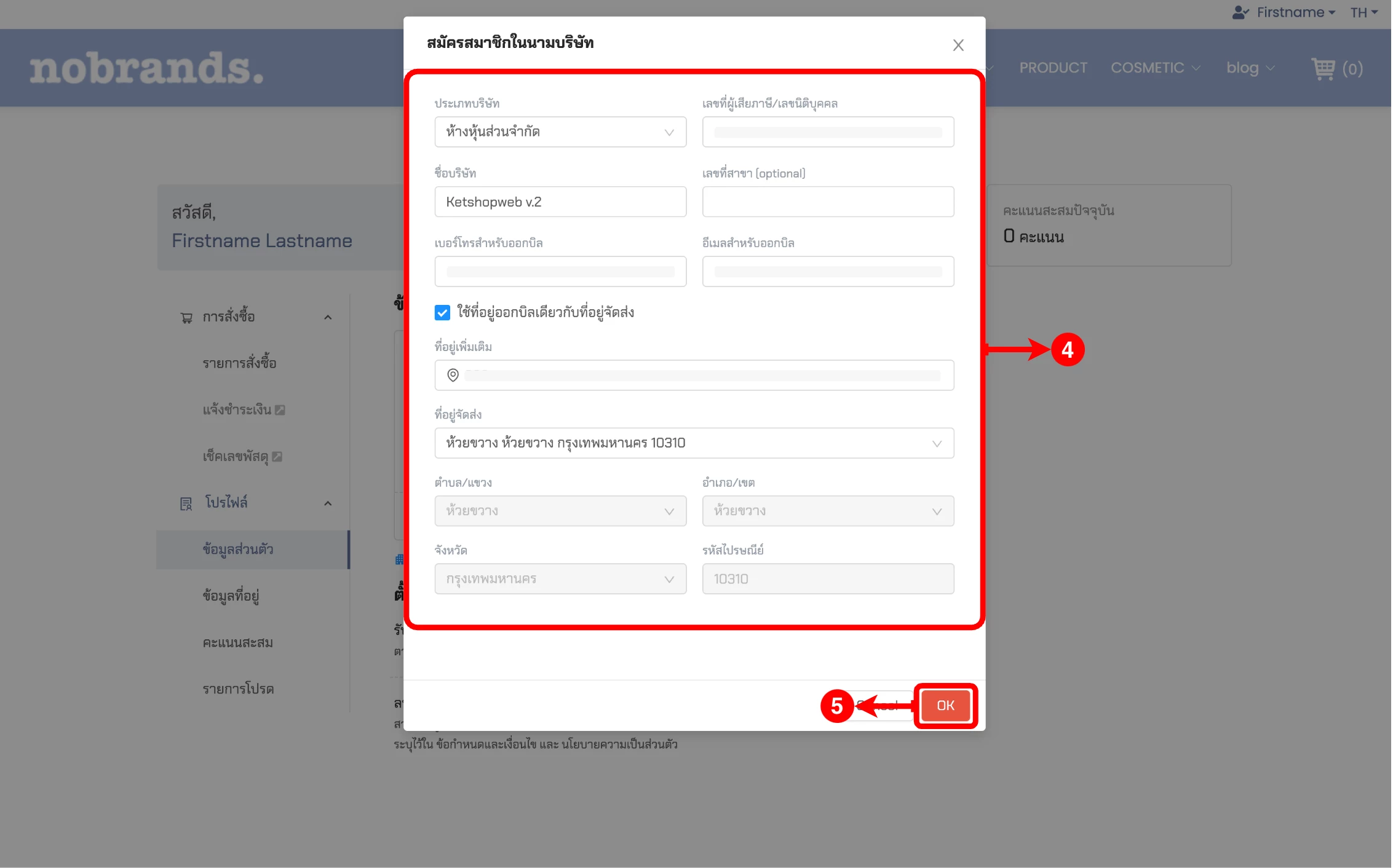 (ตำแหน่งที่ 4) กรอกข้อมูลเกี่ยวกับบริษัทให้ครบถ้วน