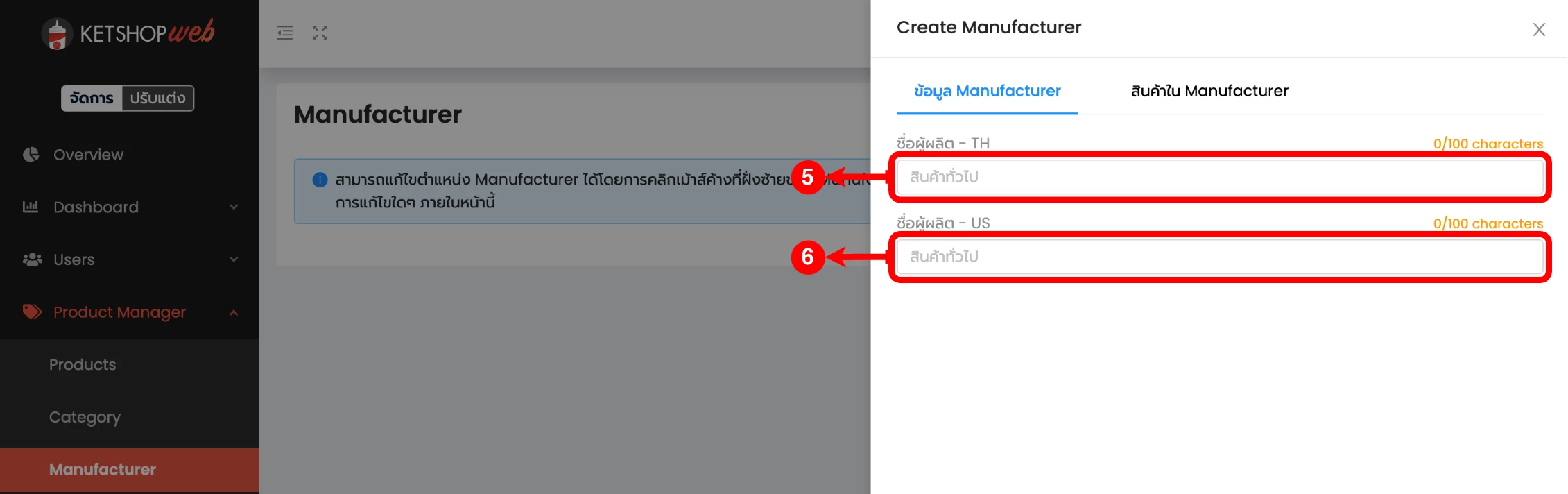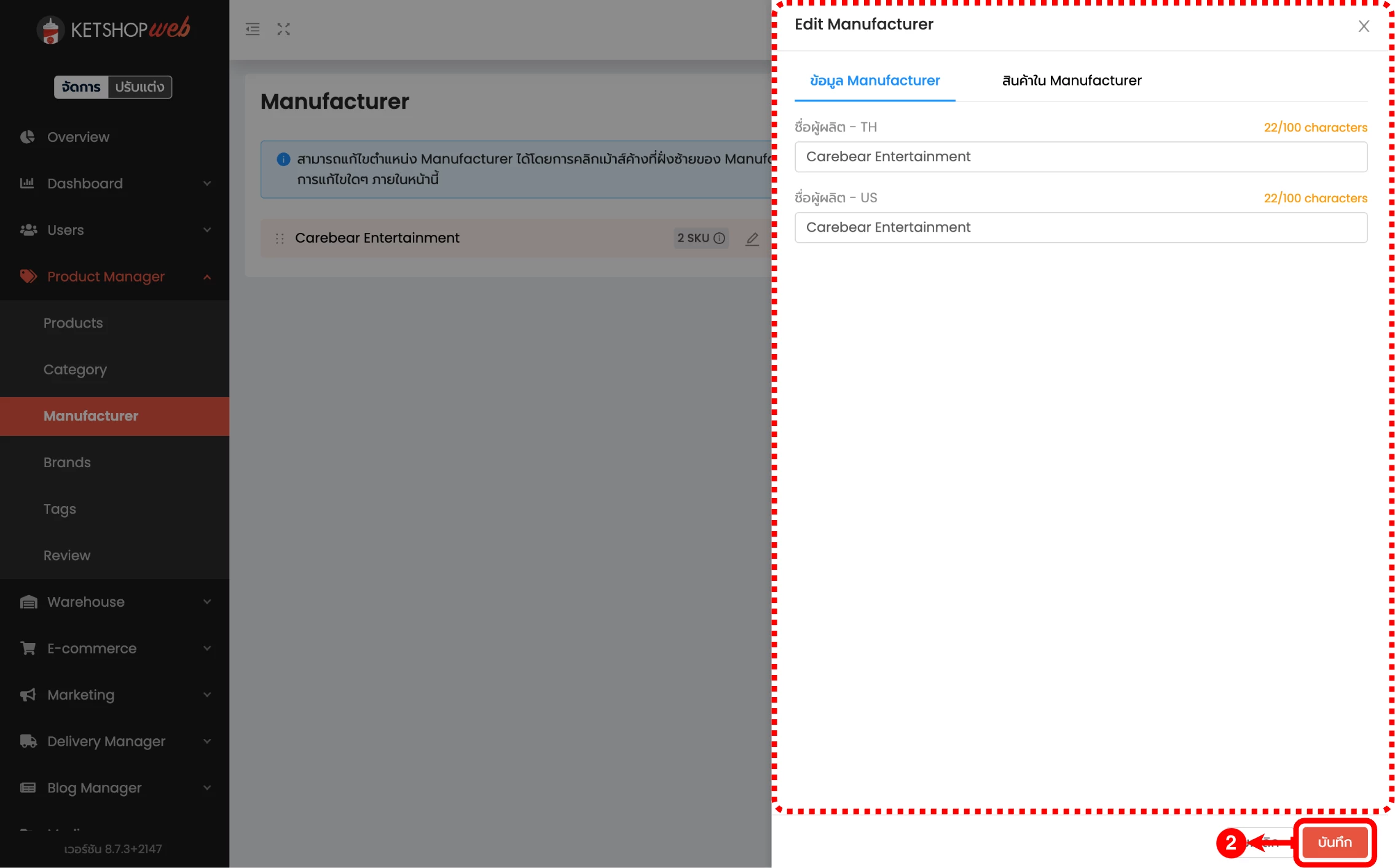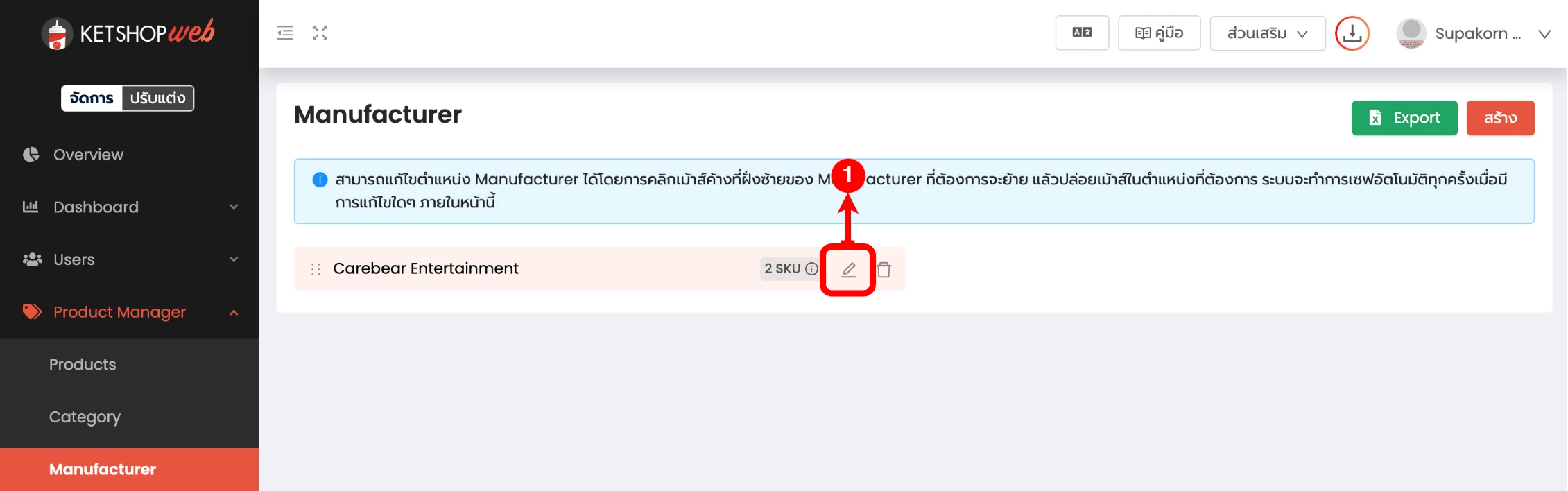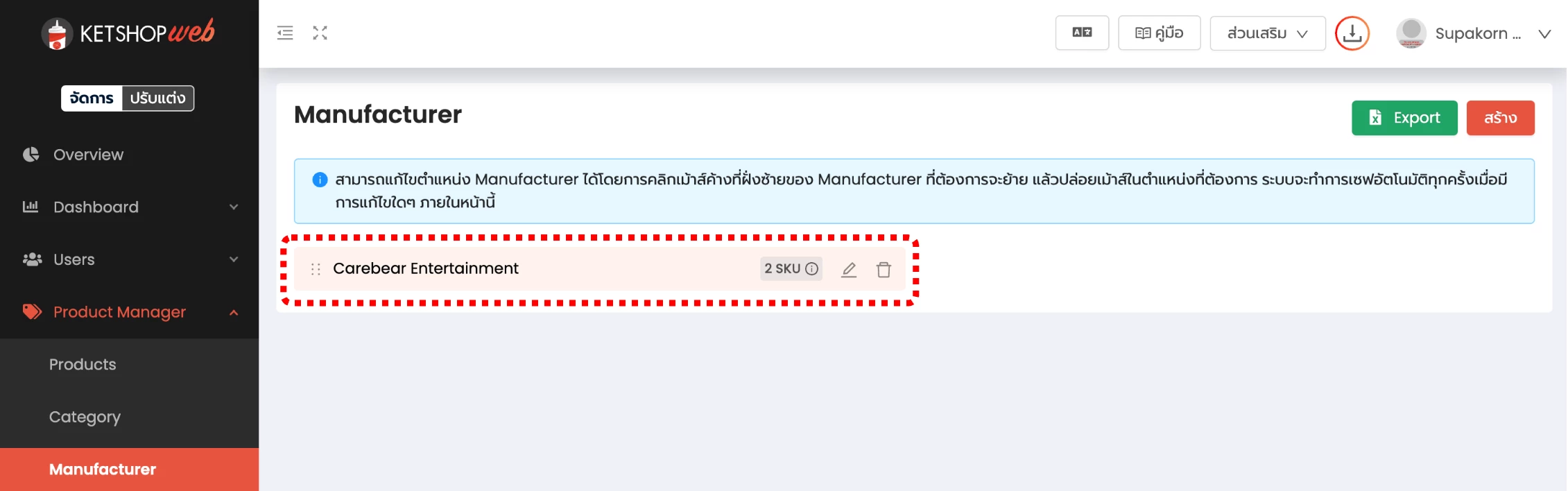 โดยสามารถแก้ไขข้อมูล Manufacturer และสินค้าใน Manufacturer ได้