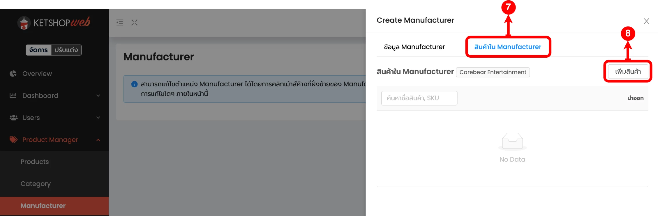 (ตำแหน่งที่ 7) คลิกที่แท็บ 'สินค้าใน Manufacturer'