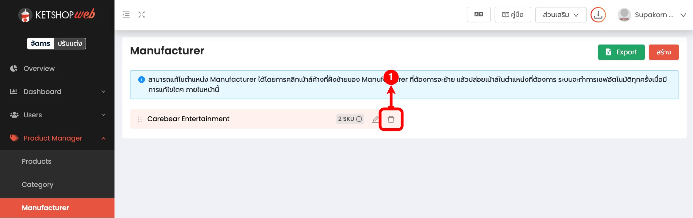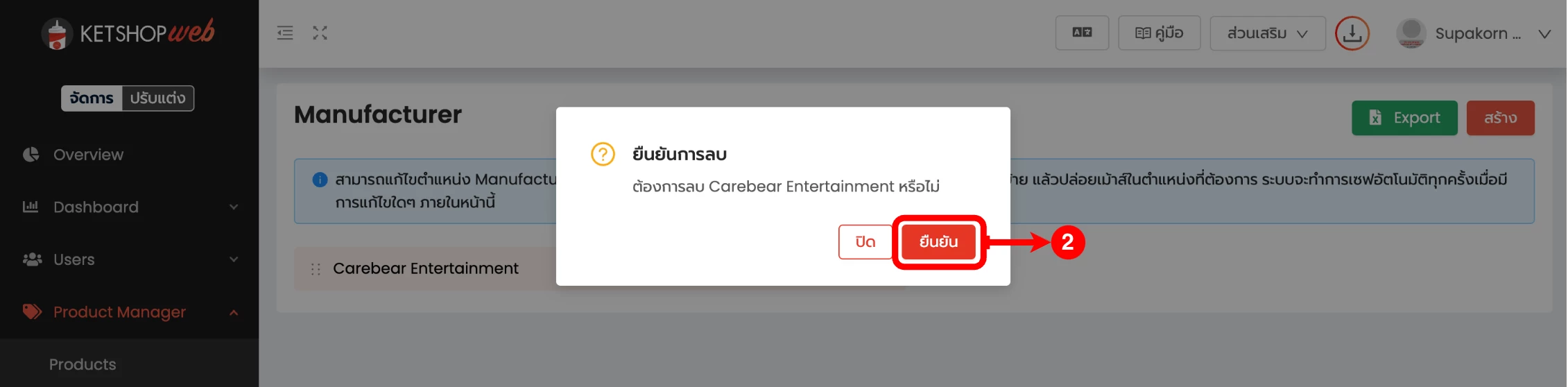 ผู้ผลิต (Manufacturer) จะถูกลบทันทีที่ยืนยันการลบ