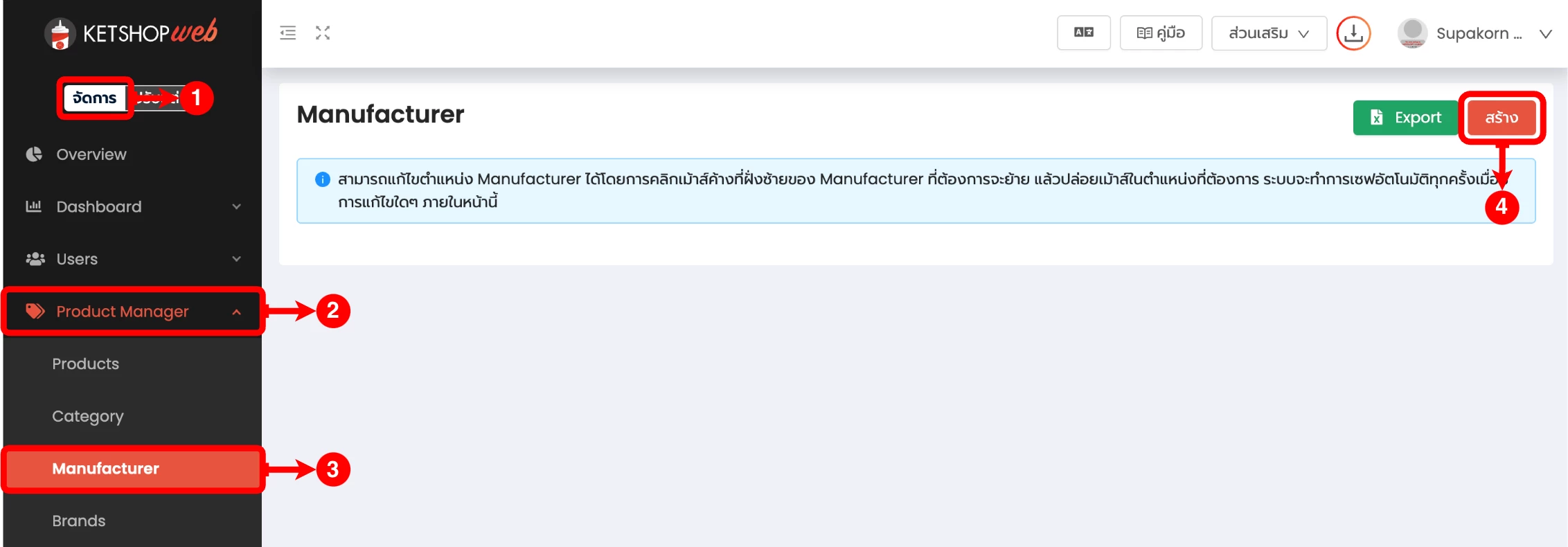 (ตำแหน่งที่ 2) คลิกเมนู 'Product Manager'