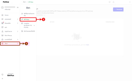 (ตำแหน่งที่ 2) คลิกเลือกเมนู 'API Keys'