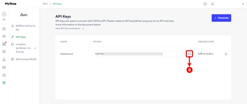 (ตำแหน่งที่ 6) คัดลอก API Keys โดยการคลิกที่ไอคอน