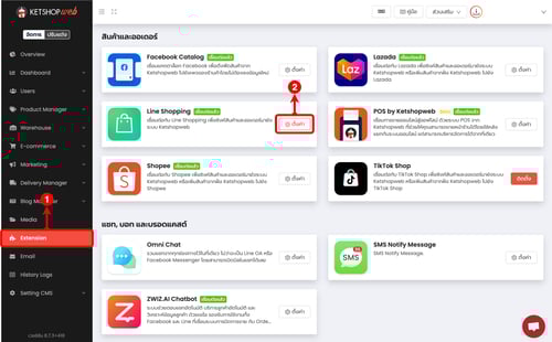 ในหน้าการจัดการเว็บไซต์ของ Ketshopweb