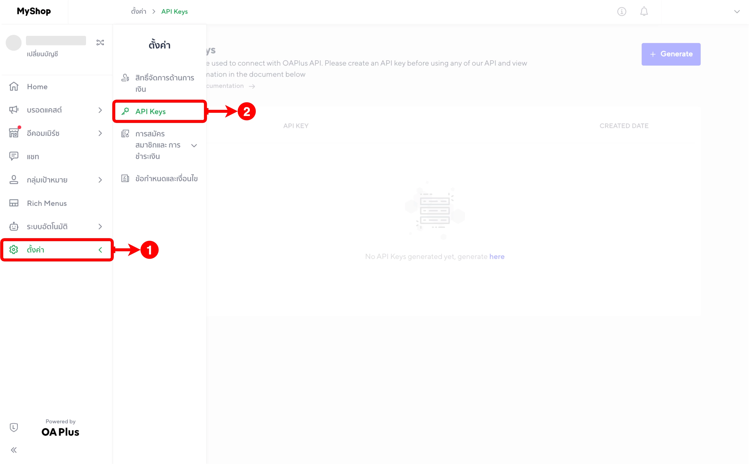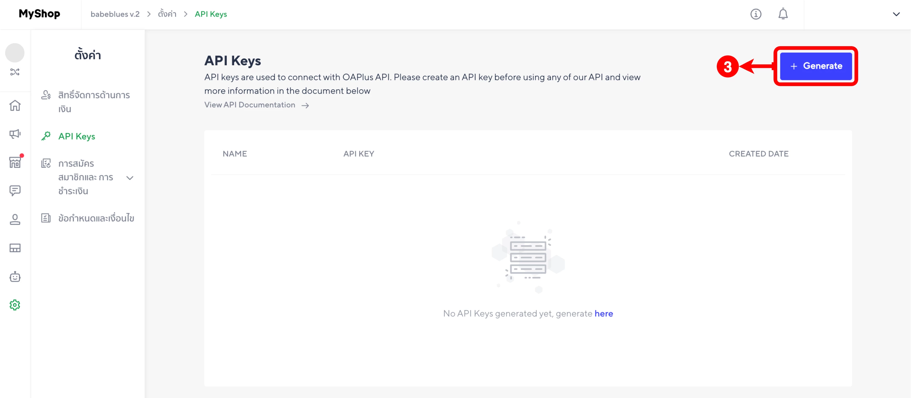 (ตำแหน่งที่ 3) ให้คลิกที่ปุ่ม 'Generate' เพื่อ Generate New API Keys