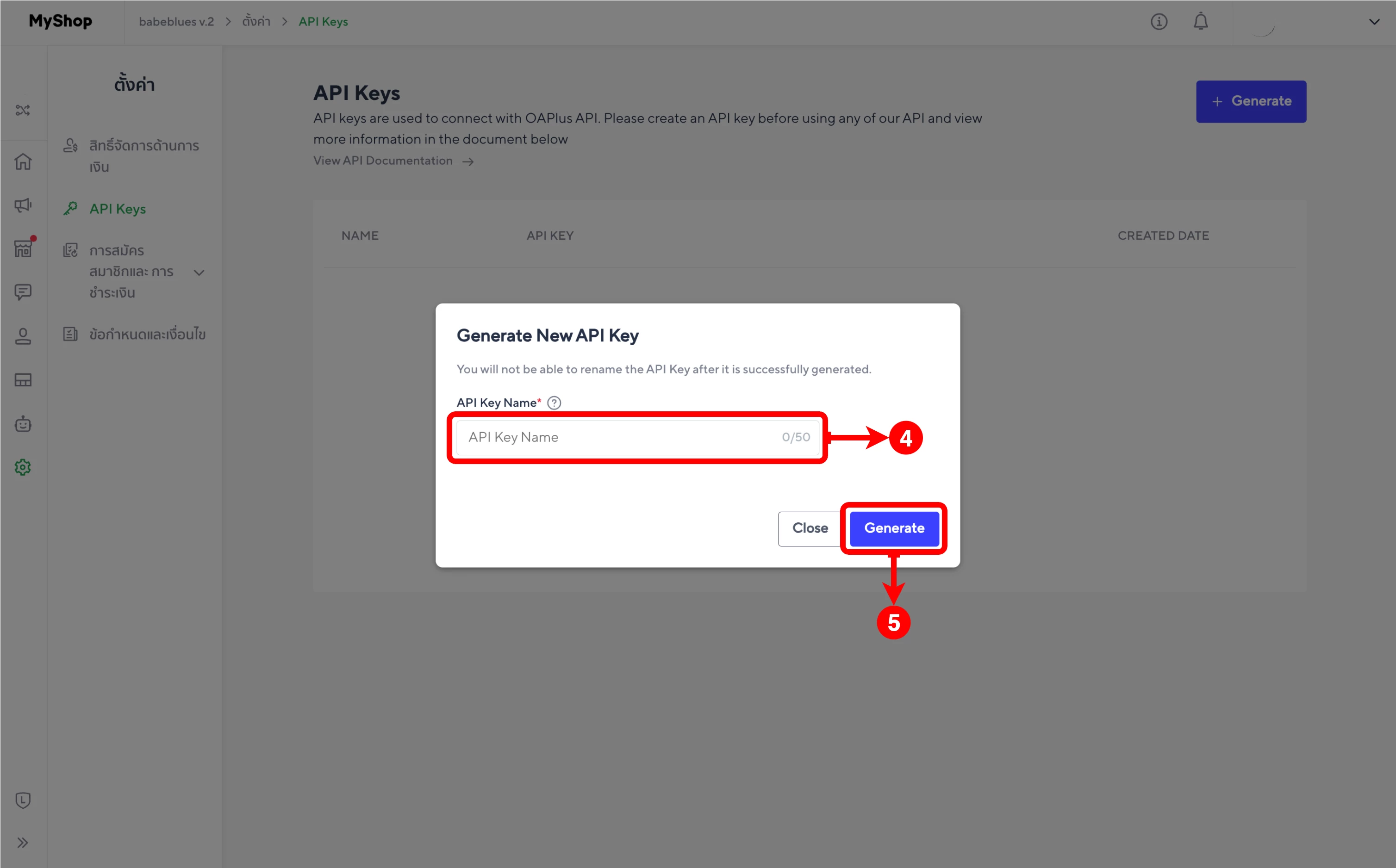 (ตำแหน่งที่ 4) กรอกชื่อ API Keys ที่ต้องการ