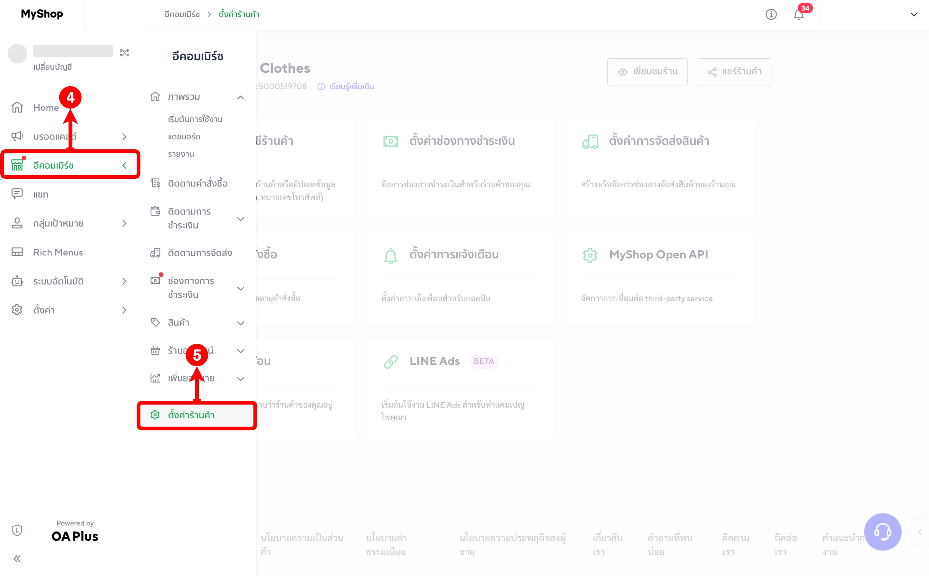 (ตำแหน่งที่ 5) จากนั้น เลือกเมนู 'ตั้งค่าร้านค้า'