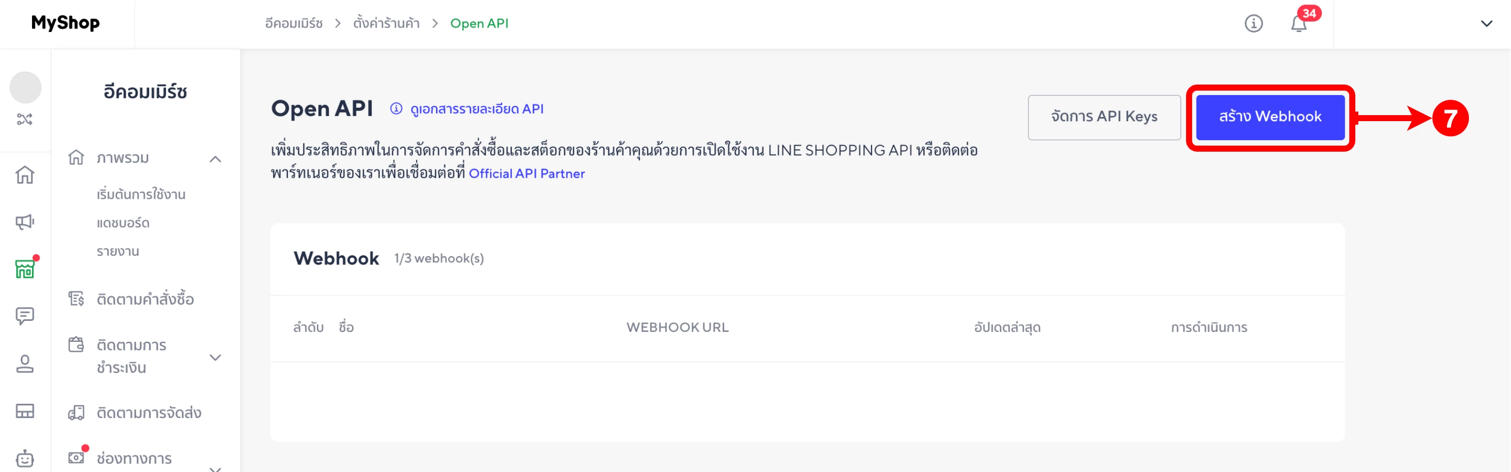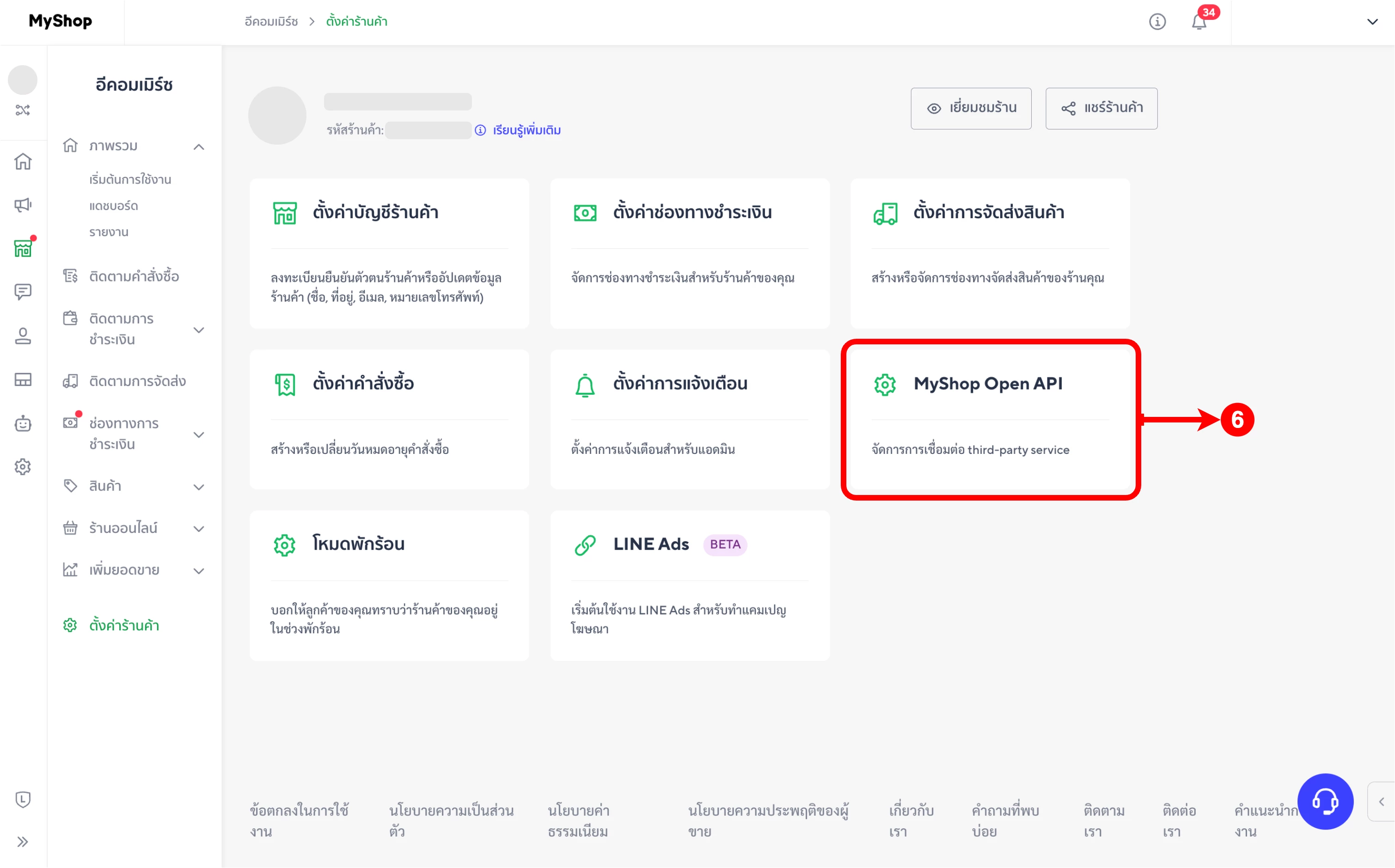 (ตำแหน่งที่ 6) คลิกที่ 'MyShop Open API'