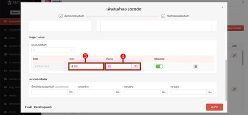 (ตำแหน่งที่ 4) กำหนดจำนวนที่ต้องการเพิ่มสินค้าไปยัง Lazada