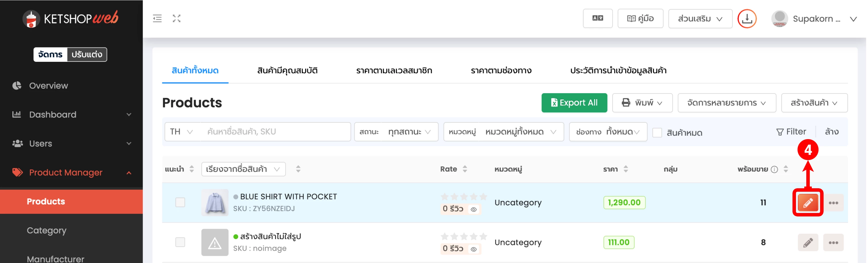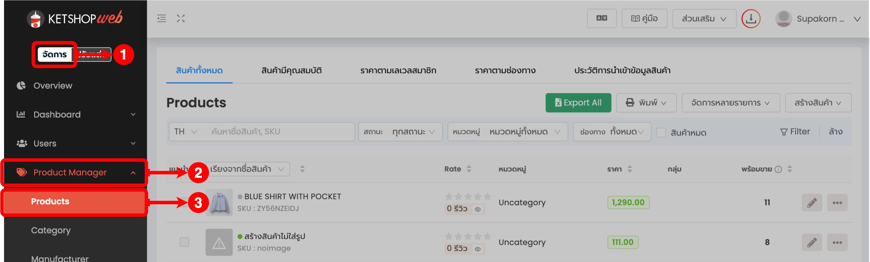 (ตำแหน่งที่ 2) คลิกที่เมนู 'Product Manager'