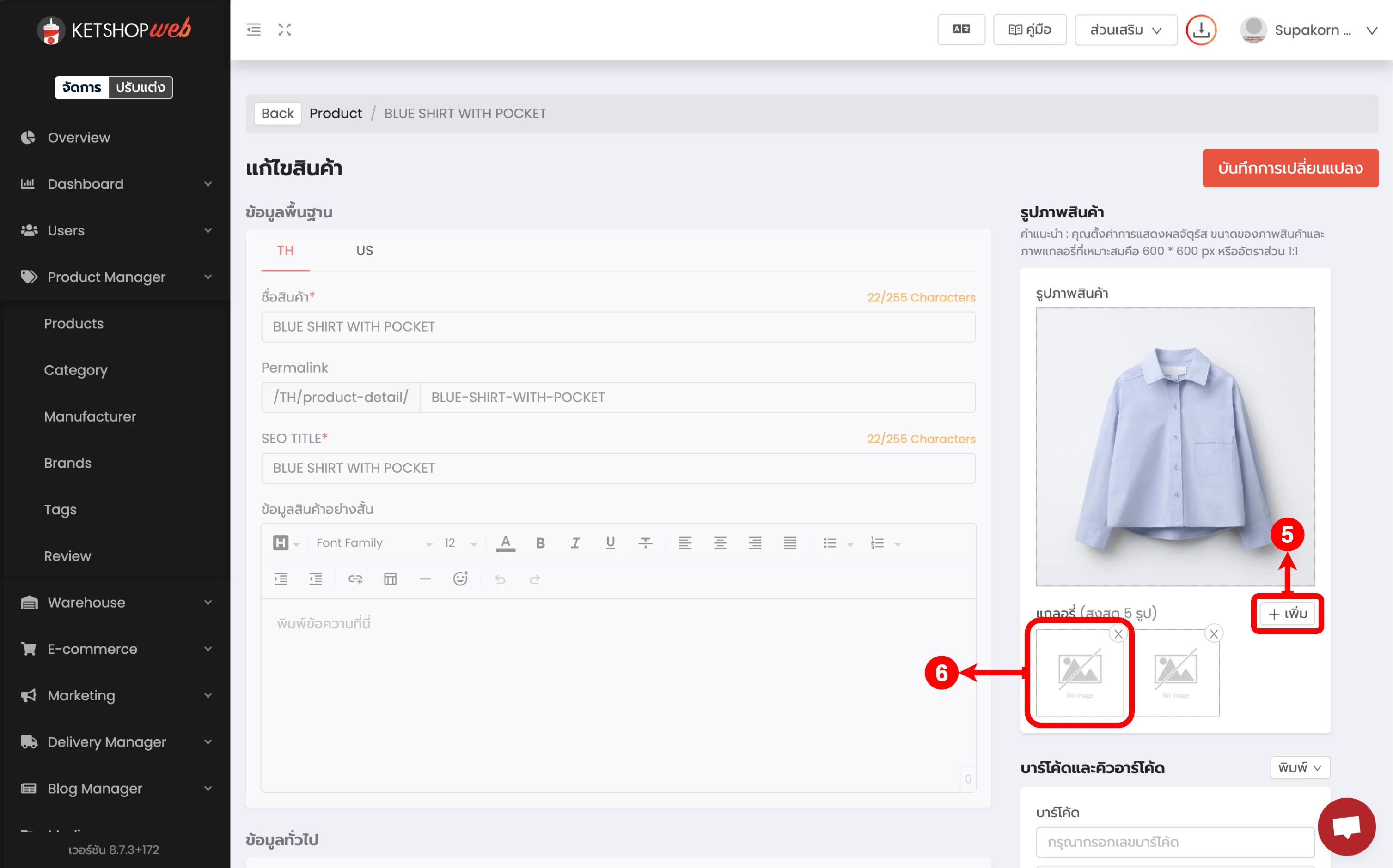 รูปภาพเพิ่มเติมของสินค้าที่จะแสดงอยู่ในหน้าของรายละเอียดสินค้า โดยสามารถเพิ่มรูปแกลลอรีได้สูงสุด 5 รูป