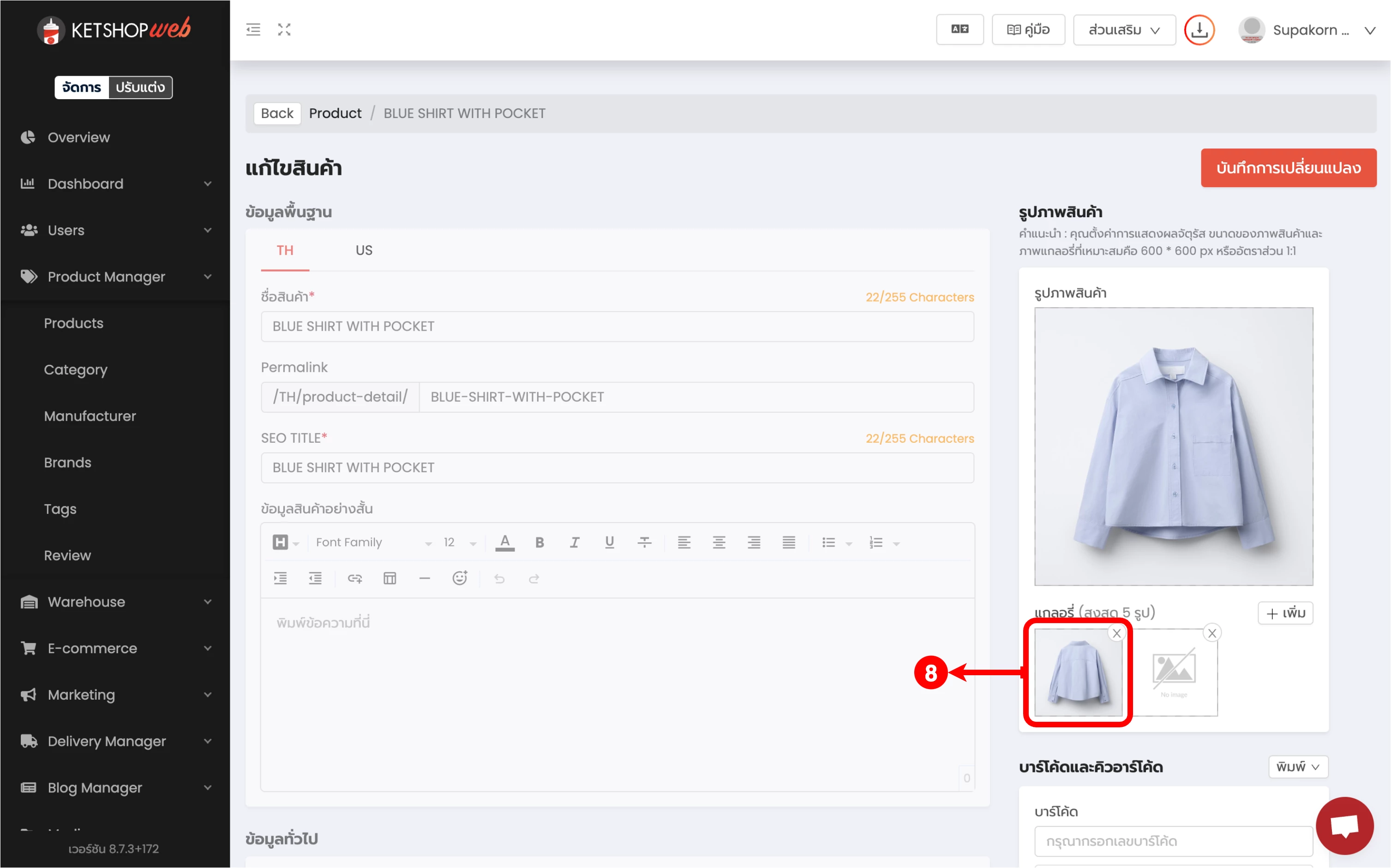 (ตำแหน่งที่ 8) เมื่ออัปโหลดสำเร็จจะแสดงรูปในแกลลอรี