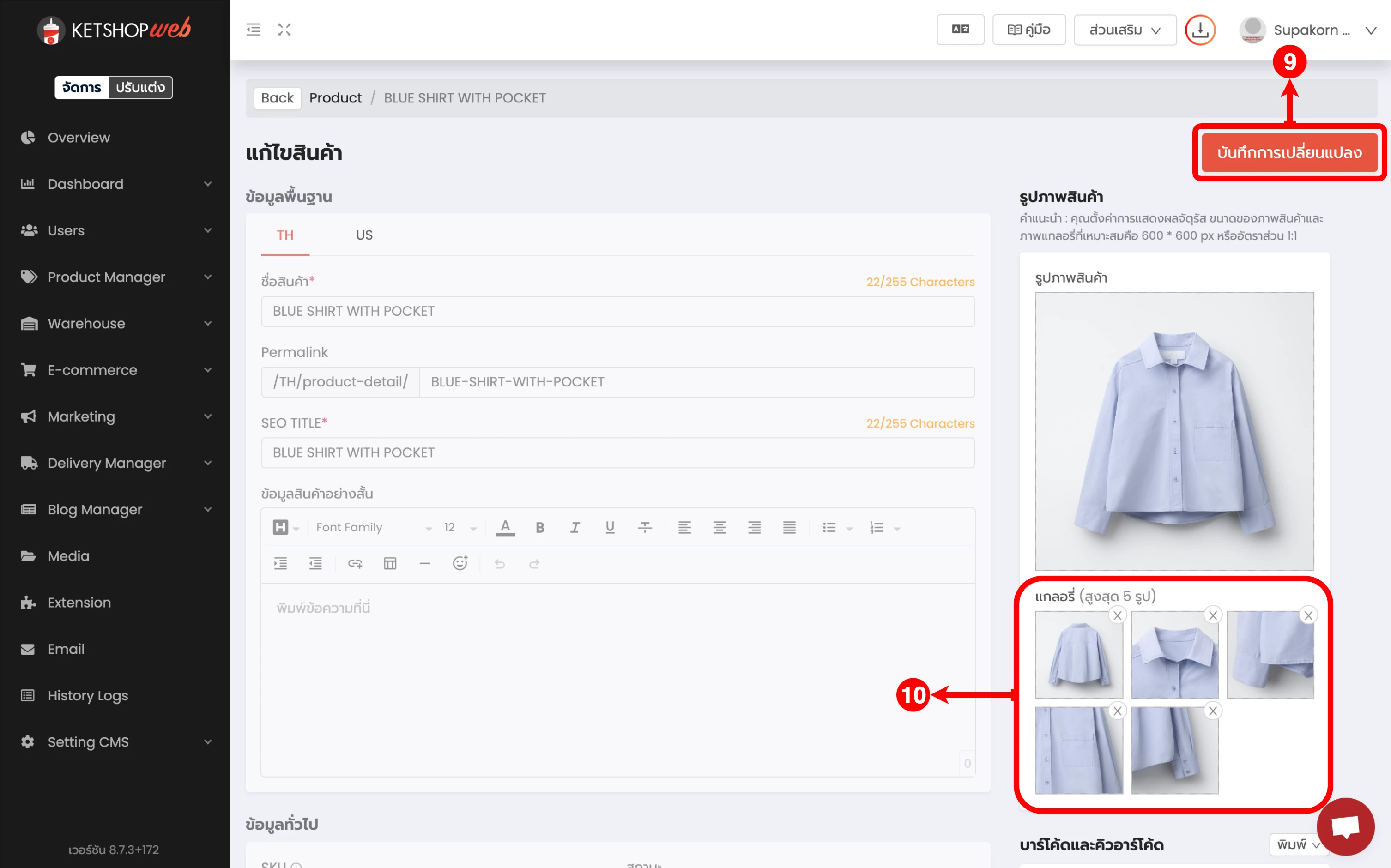 (ตำแหน่งที่ 10) คลิกปุ่ม 'บันทึกการเปลี่ยนแปลง'