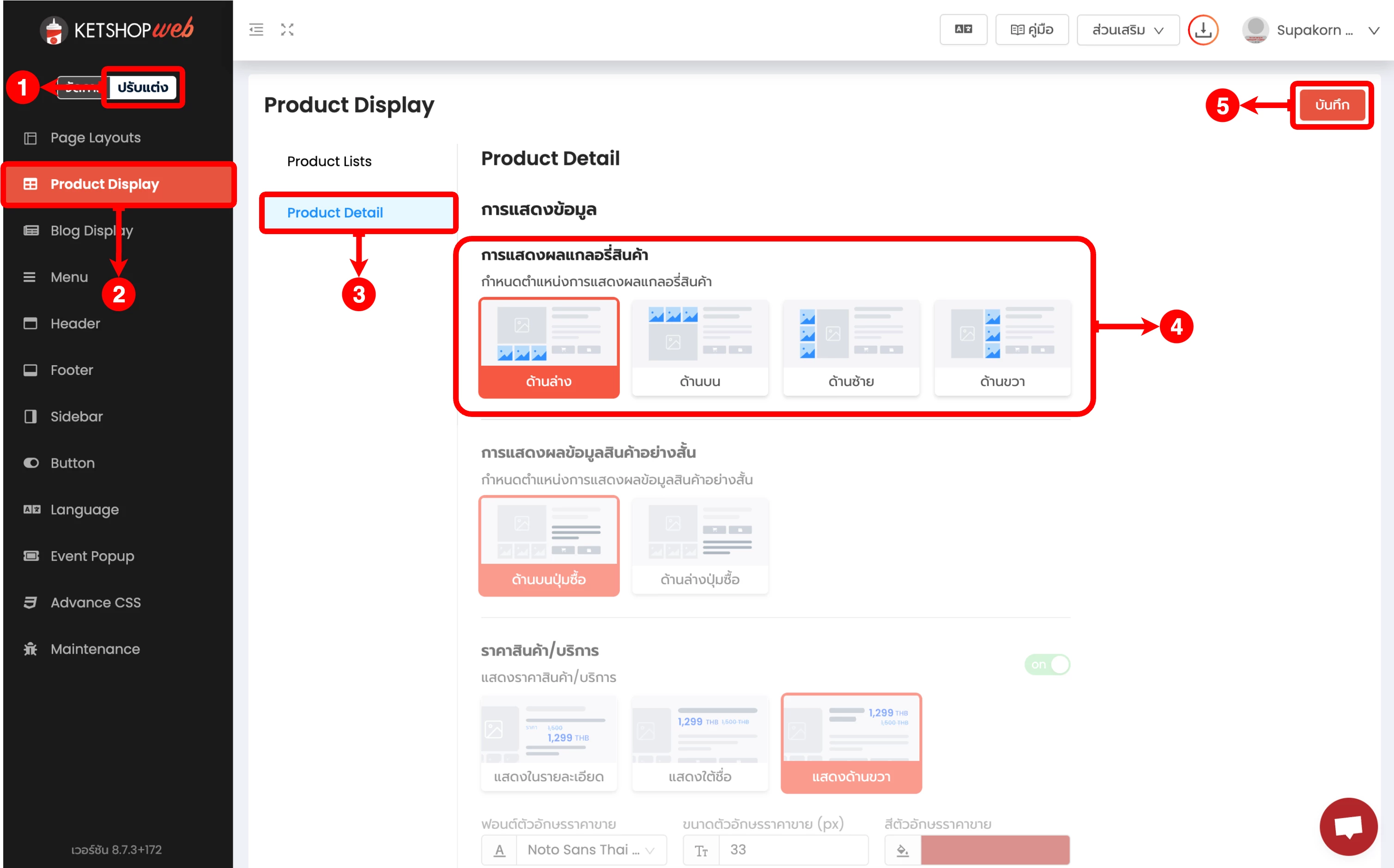 (ตำแหน่งที่ 3) จากนั้น เลือกเมนูย่อย 'Product Detail'