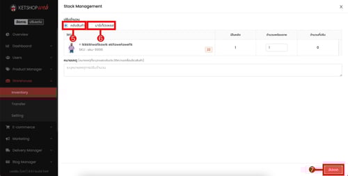 ซึ่งสามารถโยกสต็อคได้ตามต้องการแต่ต้องไม่เกินจำนวนสินค้าในเว็บไซต์ เมื่อปรับจำนวนตามที่ต้องการแล้วกดที่