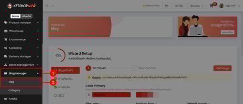 (ตำแหน่งที่ 1) คลิกเมนู "Blog Manager"