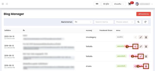 (ตำแหน่งที่ 1) ปรับสถานะเป็น "เผยแพร่"
