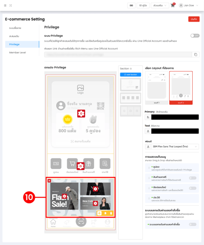 (ตำแหน่งที่ 5) เปิดใช้งานระบบ Privilege โดยคลิกที่ปุ่มเป็น "On"