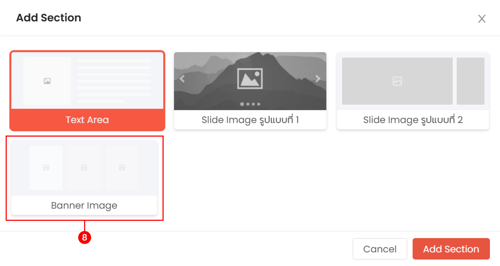 (ตำแหน่งที่ 8) คลิกเลือก Section "Banner Image"