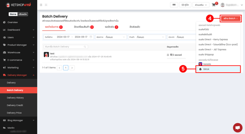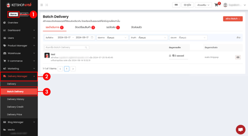 (ตำแหน่งที่ 3) เลือกเมนู "Batch Delivery"