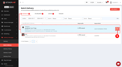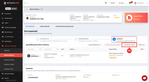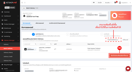 เมื่อกำหนดวิธีการจัดส่งพัสดุสำเร็จ สถานะแบทซ์จะถูกปรับเป็น รอจัดส่ง
