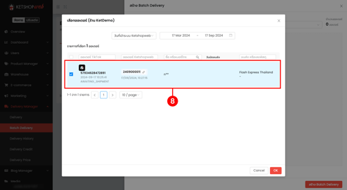 (ตำแหน่งที่ 8) เลือกออเดอร์ที่ต้องการจัดส่งในรอบนั้นๆ