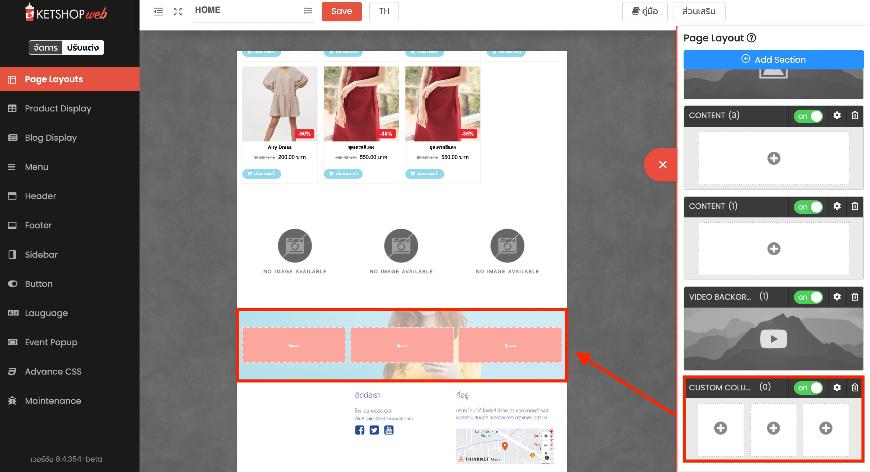 จะปรากฏ Custom Column ขึ้นในหน้า Page Layout พร้อมตัวอย่างหน้า Home