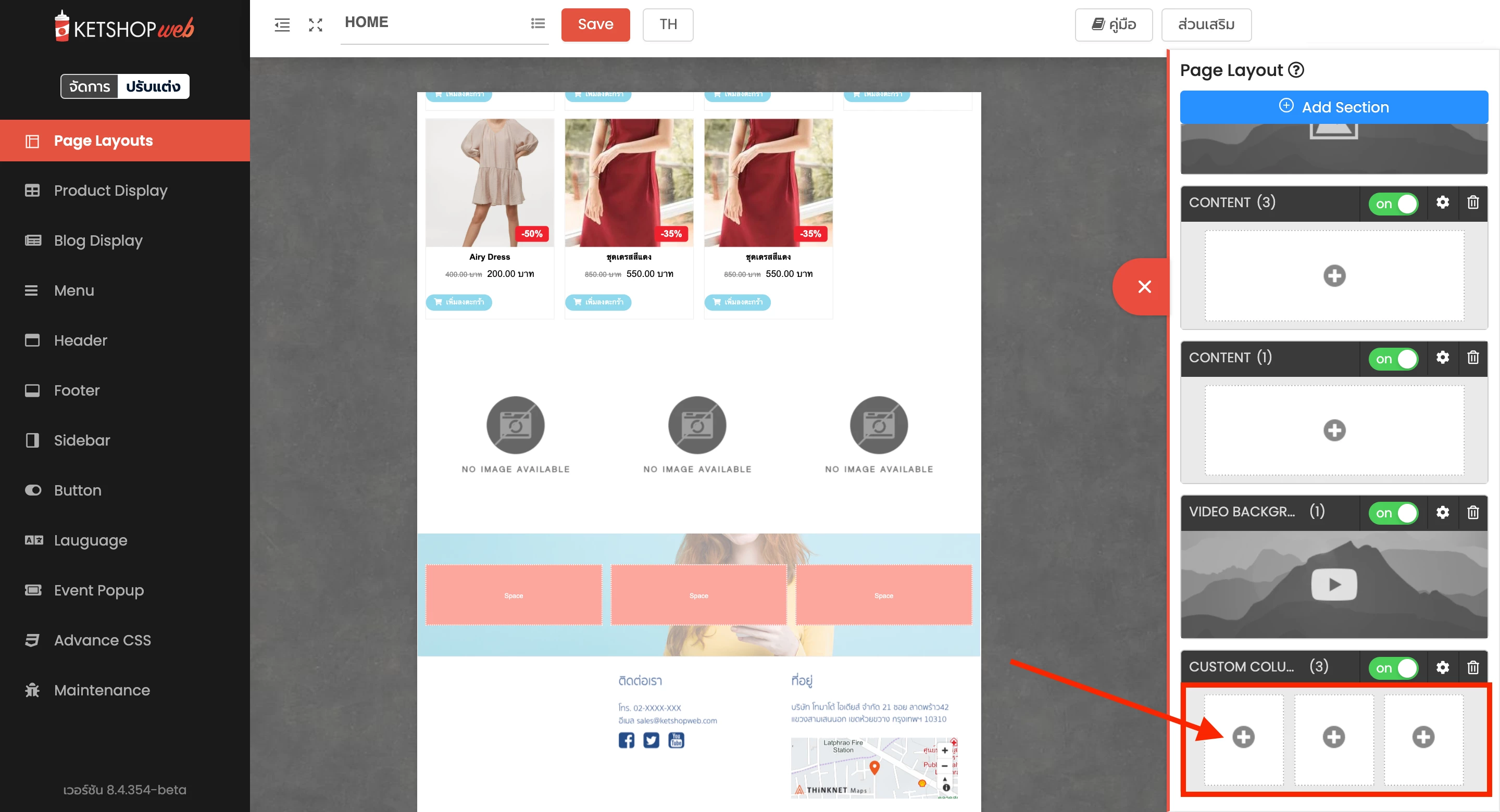 (ตำแหน่งที่ 5) เลือก "Custom Column" จากนั้นคลิก "Add Section"