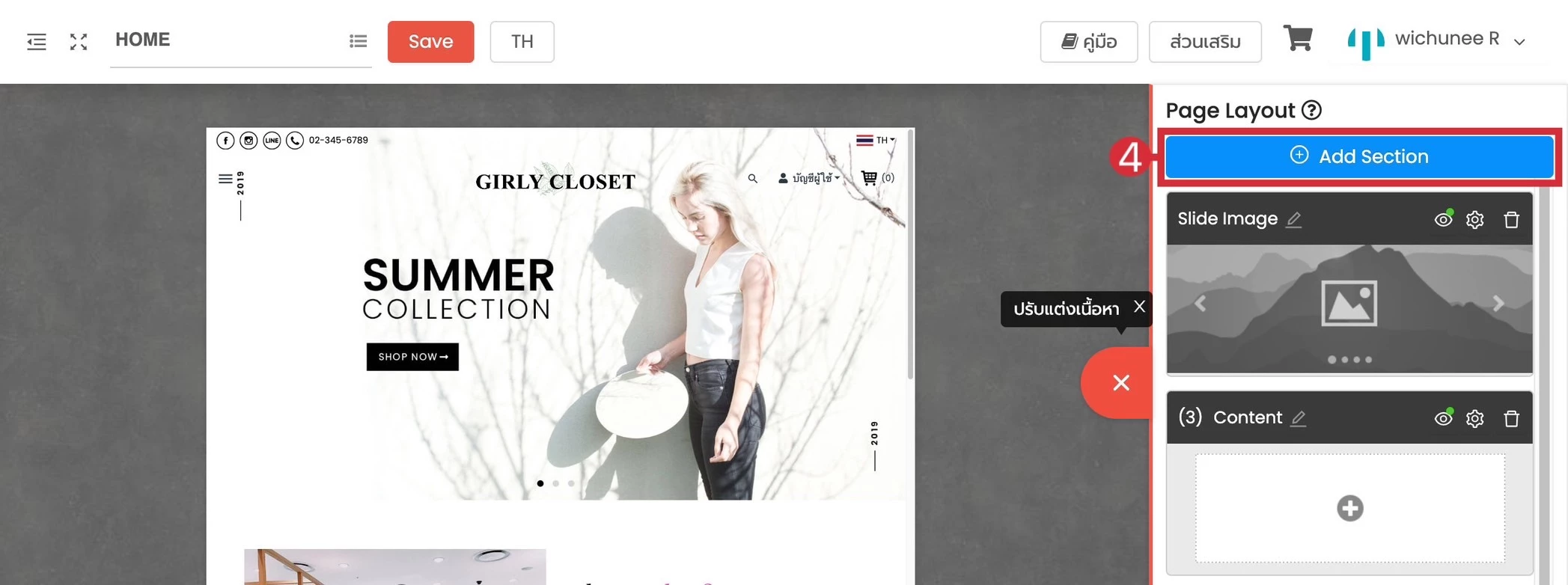 (ตำแหน่งที่ 4) คลิก "Add Section"