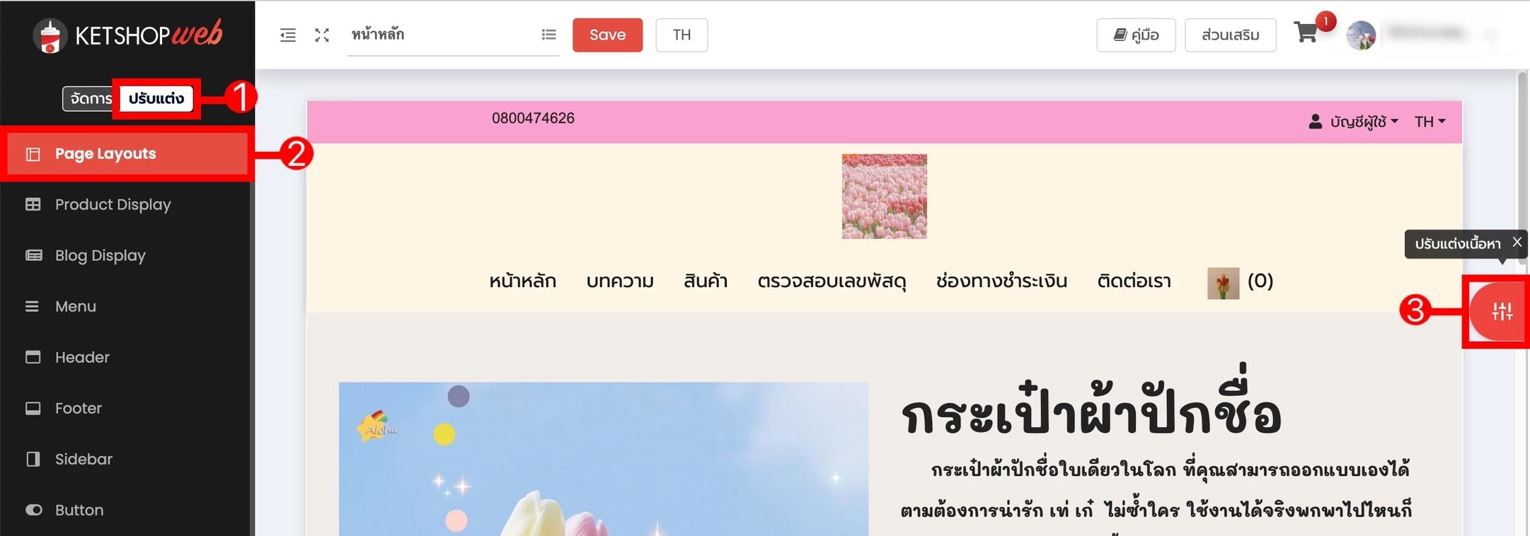 (ตำแหน่งที่ 3) คลิก "ปรับแต่งเนื้อหา"