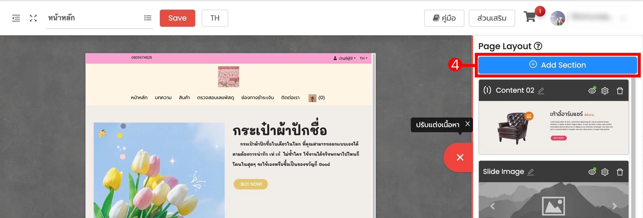 (ตำแหน่งที่ 4) คลิก "Add Section"