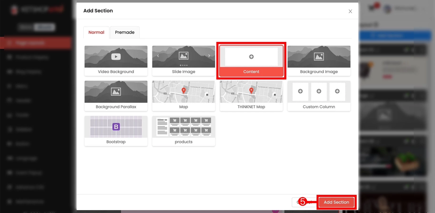 (ตำแหน่งที่ 5) เลือก "Content" จากนั้นคลิก "Add Section"