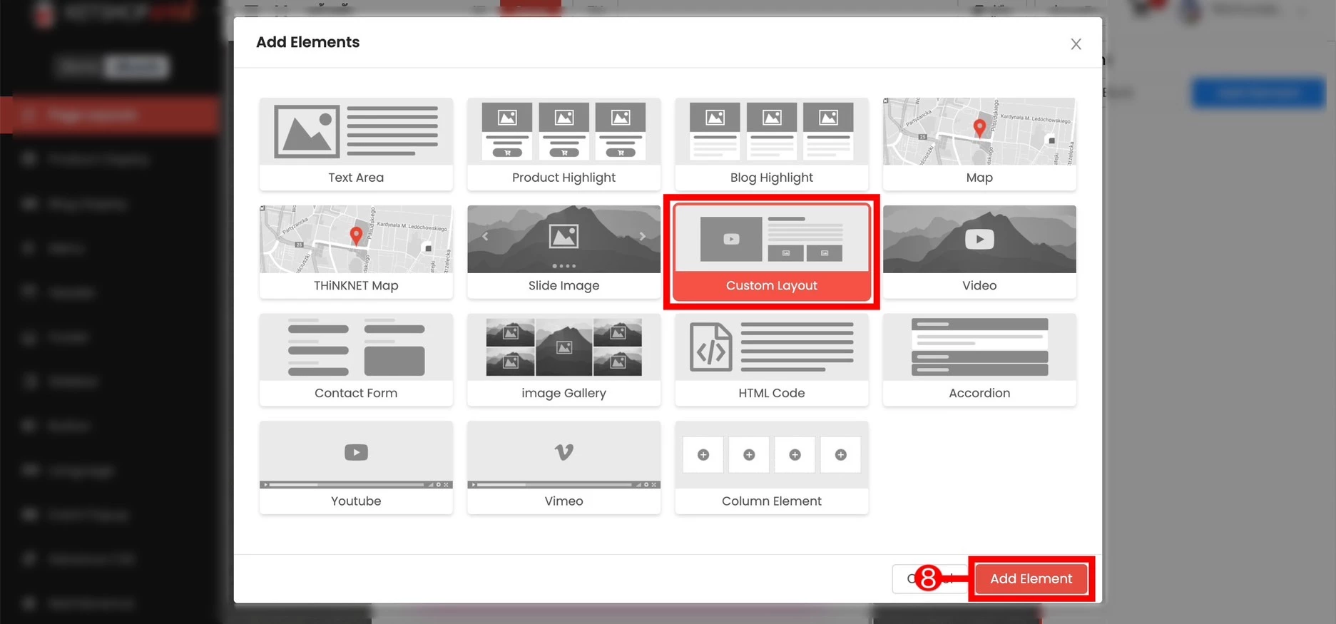 (ตำแหน่งที่ 8) เลือก "Custom layout" จากนั้นคลิก "Add Element"