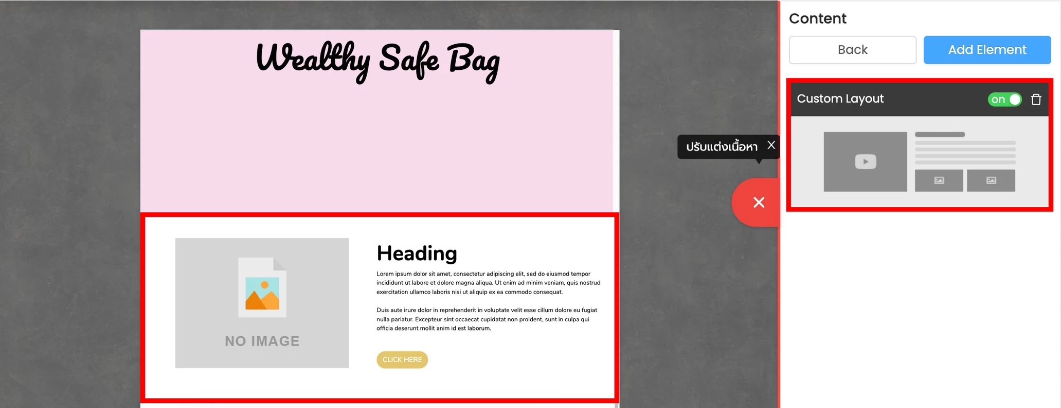 Custom Layout คือ Element ที่ช่วยจัดการเรื่องเลย์เอ้าท์ในหน้าเว็บไซต์ โดยสามารถเลื่อนซ้าย-ขวา เพื่อปรับความกว้างในแต่ละคอลัมน์ได้ และสามารถเพิ่ม Element ภายในได้อีกด้วย