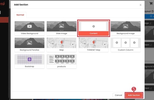 (ตำแหน่งที่ 5) เลือก "Content" แล้ว คลิก "Add Section"