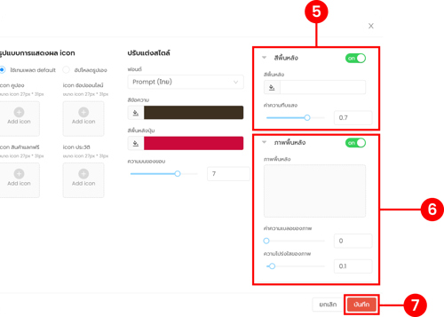 (ตำแหน่งที่ 6.1) ใช้รูปแบบ เทมเพลต default สามารถปรับสี icon ได้