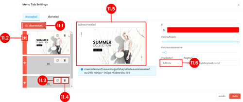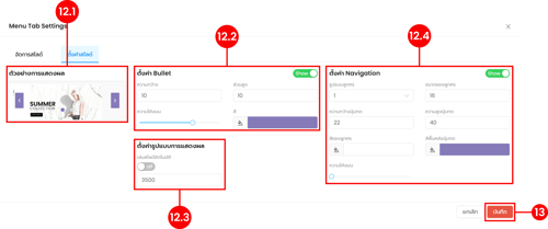 (ตำแหน่งที่ 11.6) เปิดการใช้งานลิงก์ในกรณีผู้ใช้งานต้องการให้ภาพใน Slide สามารถคลิกแล้วลิงก์ไปยังหน้าเพจอื่นได้