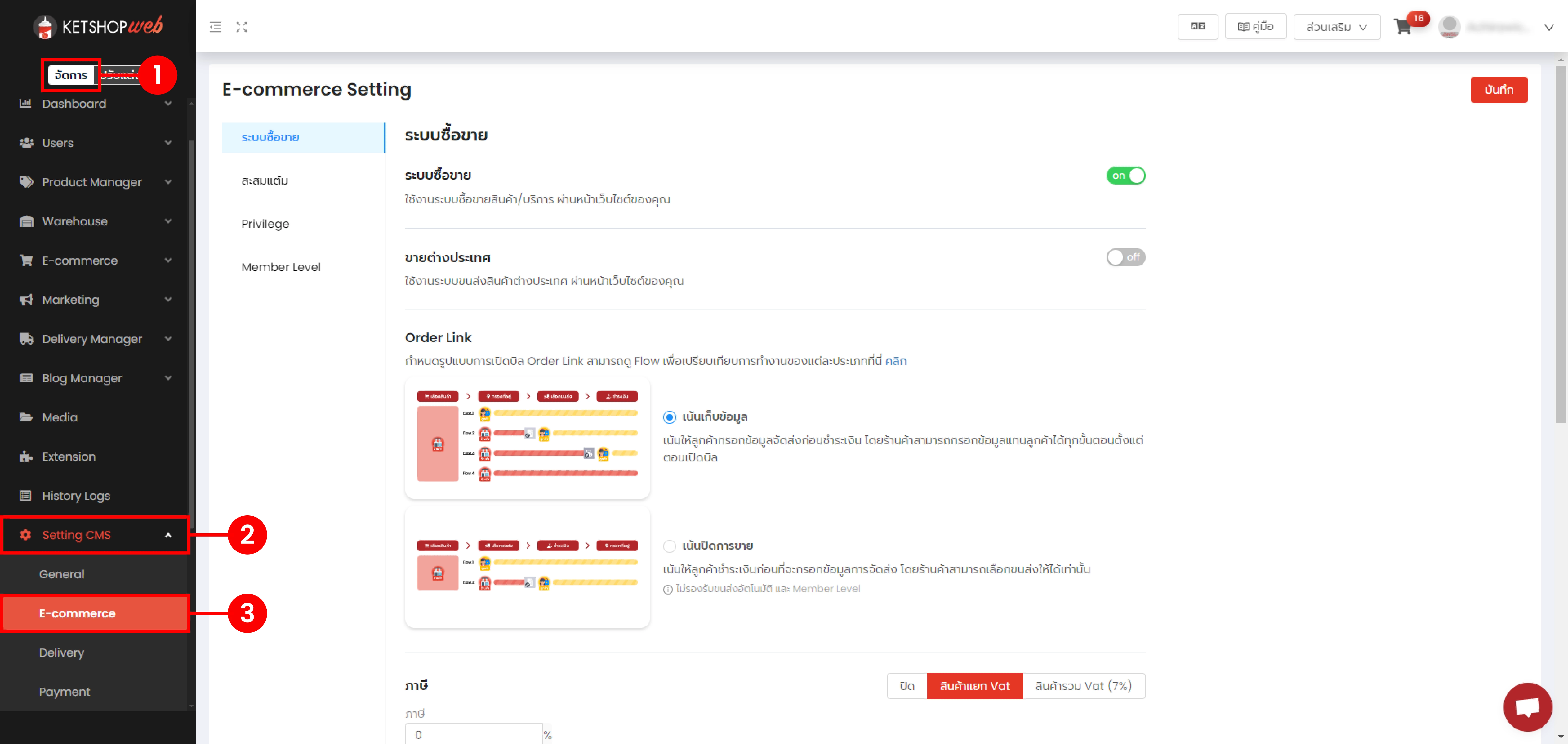 (ตำแหน่งที่ 3) เลือกเมนูย่อย "E-commerce"