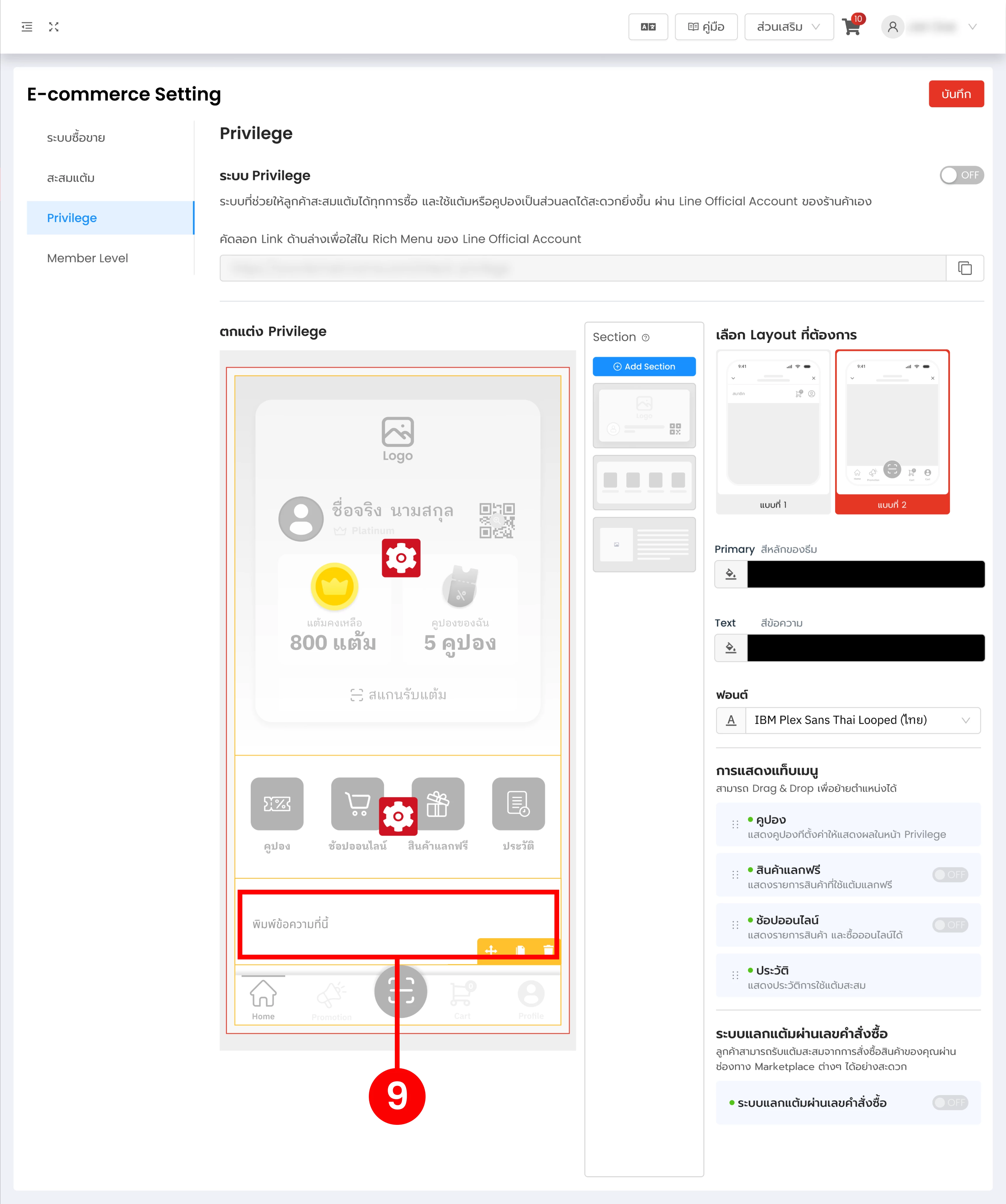(ตำแหน่งที่ 5) เปิดใช้งานระบบ Privilege โดยคลิกที่ปุ่มเป็น "On"