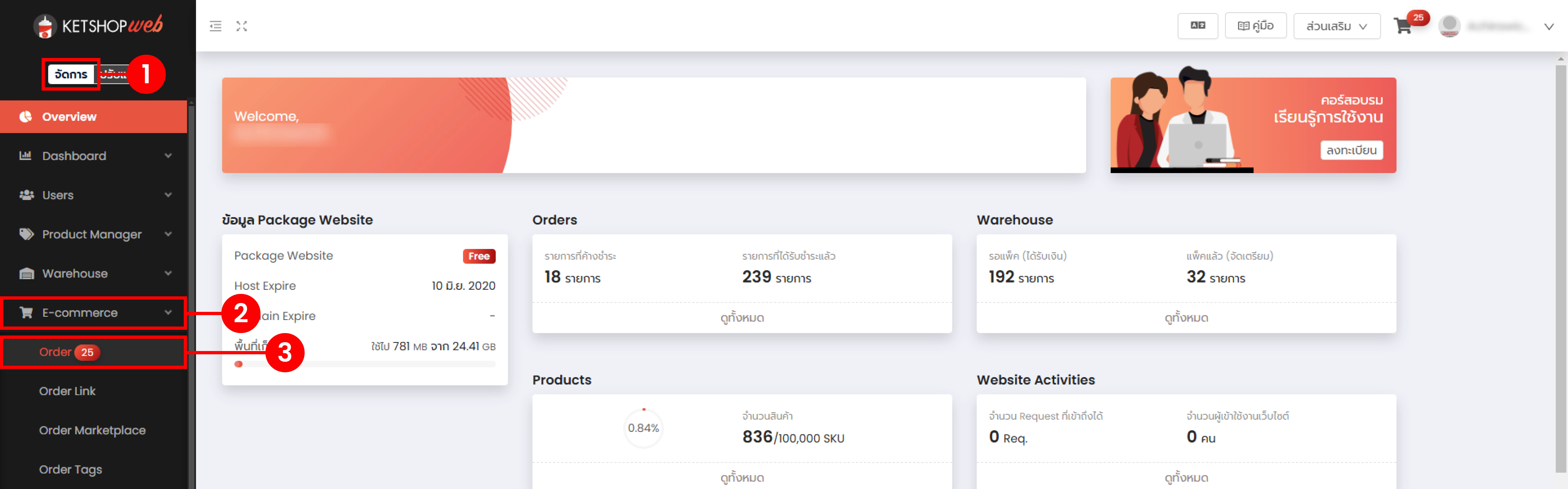 เข้าสู่ระบบจัดการเว็บไซต์ Ketshopweb