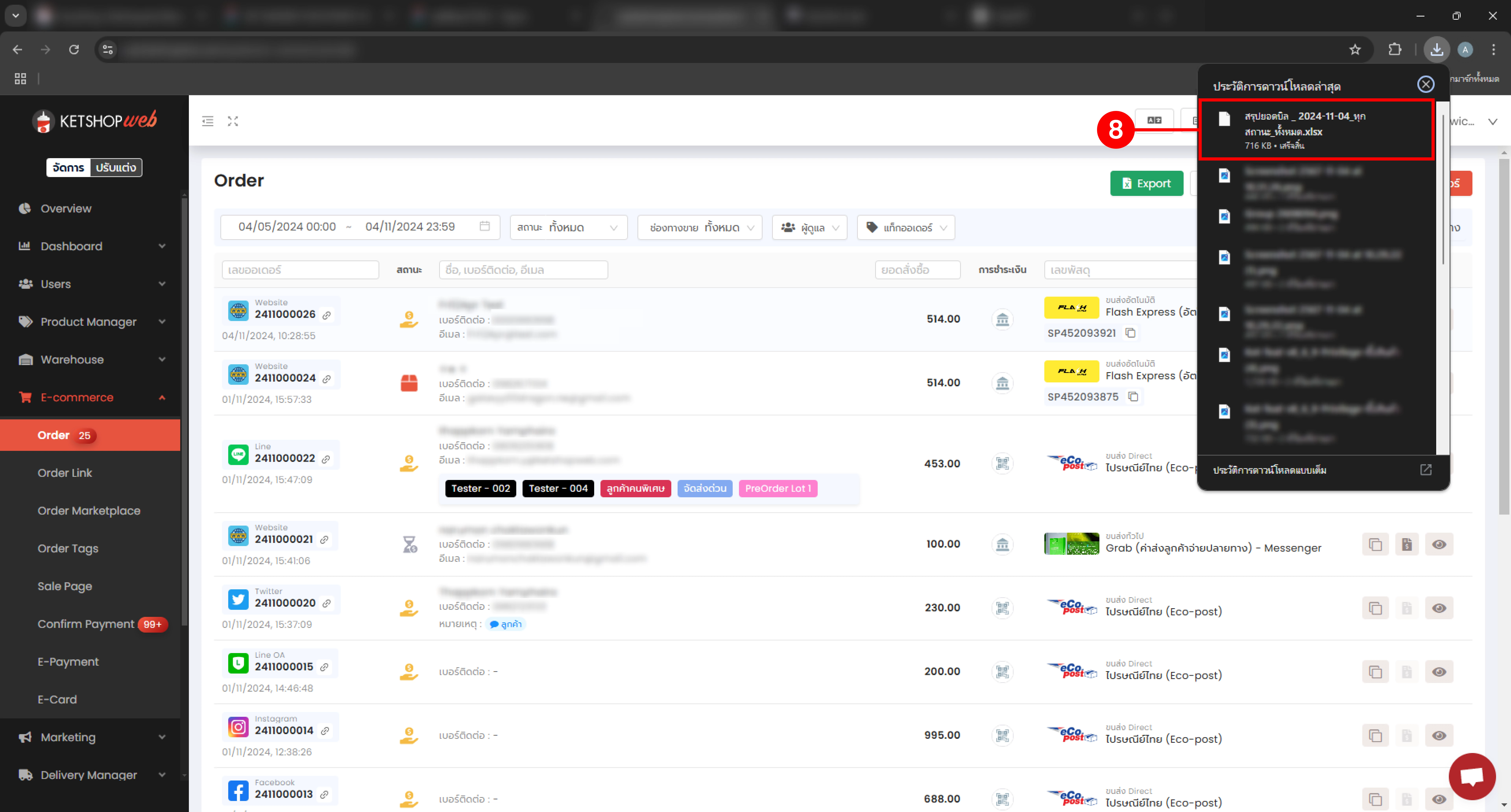 4. Export แบบสรุปยอดทุกช่องทาง