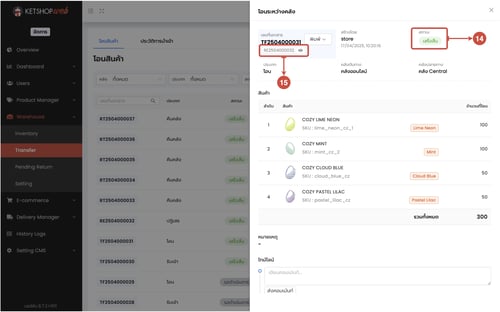 (ตำแหน่งที่ 14) หลังจากยืนยัน สถานะรายการโอน หรือรับเข้าจะเป็นเสร็จสิ้น