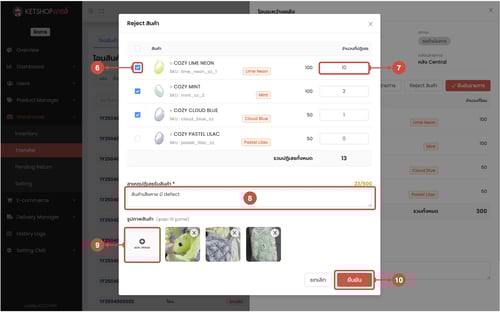 (ตำแหน่งที่ 9) เพิ่มรูปภาพสินค้าที่ปฏิเสธการรับเพื่อเป็นหลักฐาน