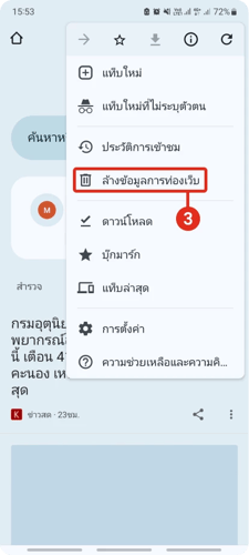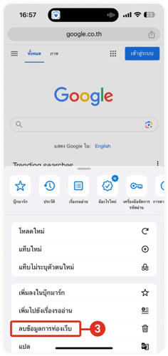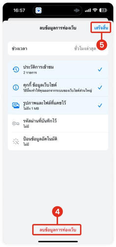 (ตำแหน่งที่ 3) เลือกที่ ลบข้อมูลการท่องเว็บ